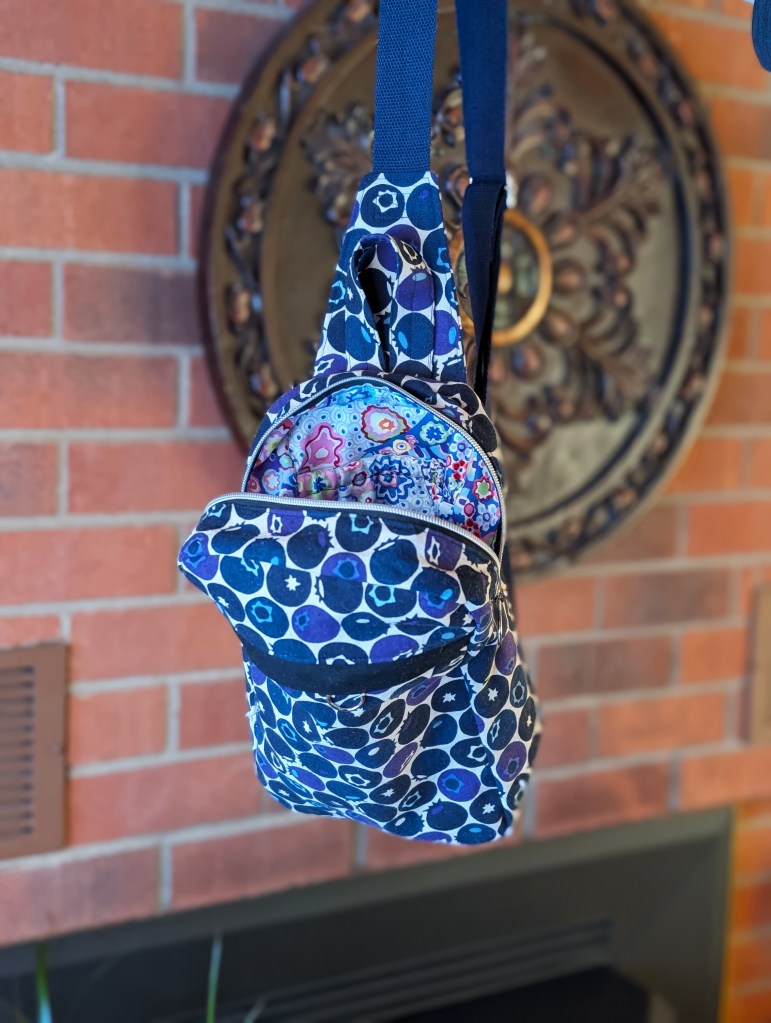These Blueberry print sling bags are a perfect day or travel bag!