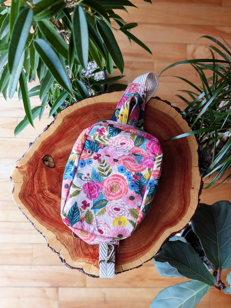 The exterior and interior of this bag is Daisy Fields fabric, part of Rifle Paper Co’s fabric line called Bramble. The exterior is unbleached canvas and the interior is quilting cotton.